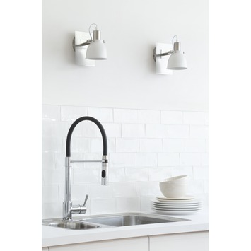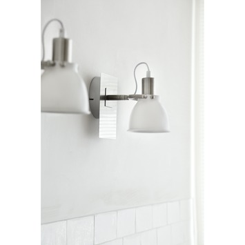Wandspot Sem is een moderne wandlamp met een industriële touch. Waar het strakke, ronde, chroomkleurige armatuur zorgt voor een moderne look, creëert de witte spot een fris, industrieel gevoel. De witte binnenkant van het kapje zorgt voor een speels en extra fris effect. Het kapje is draaibaar en hierdoor gemakkelijk af te stellen op de gewenste plek. Wandspot Sem is ook verkrijgbaar in het zwart en als trioplaat.