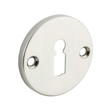 Sleutelplaatjes, mat vernikkeld (RVS look) verpakt per 2 stuks / zichtbare bevestiging. Rond. Dit artikel maakt deel uit van het uitgebreide assortiment van deurbeslag en accessoires.