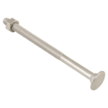 RVS slotbout incl. moer. Het vierkante deel wordt in het hout getrokken, waardoor de moer zonder meedraaien van de kop kan worden vastgedraaid. Ook hebben hengen vierkante gaten, speciaal voor deze bout.