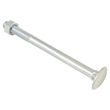 Verzinkte slotbout incl. moer. Het vierkante deel wordt in het hout getrokken, waardoor de moer zonder meedraaien van de kop kan worden vastgedraaid. Ook hebben hengen vierkante gaten, speciaal voor deze bout.