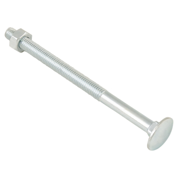 Verzinkte slotbout incl. moer. Het vierkante deel wordt in het hout getrokken, waardoor de moer zonder meedraaien van de kop kan worden vastgedraaid. Ook hebben hengen vierkante gaten, speciaal voor deze bout.