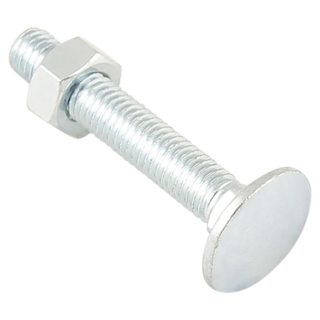 Verzinkte slotbout incl. moer. Het vierkante deel wordt in het hout getrokken, waardoor de moer zonder meedraaien van de kop kan worden vastgedraaid. Ook hebben hengen vierkante gaten, speciaal voor deze bout.