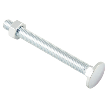 Verzinkte slotbout incl. moer. Het vierkante deel wordt in het hout getrokken, waardoor de moer zonder meedraaien van de kop kan worden vastgedraaid. Ook hebben hengen vierkante gaten, speciaal voor deze bout.