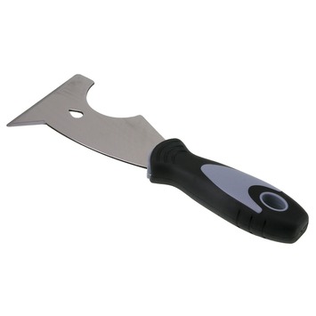 De KARWEI softgrip multifunctionele schraper is een multifunctionele schraper van het KARWEI eigen merk. De multischraper heeft een stalen, multifunctioneel blad en een softgrip kunststof steel voor extra gebruikscomfort. De multischraper is geschikt voor het afkrabben en wegsteken van oude behang- en verfresten, om te plamuren, loszittende spijkers te verwijderen, verfblikken te openen en om overtollige verf van uw verfrollers af te strijken. Het blad heeft een breedte van 6 cm.