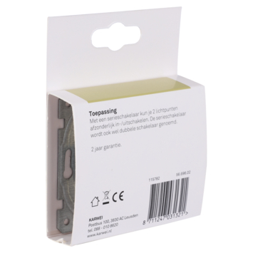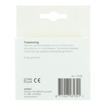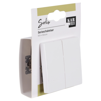 Met deze KARWEI Solis serieschakelaar wit kun je de spanning van twee lichtpunten afzonderlijk in- en uitschakelen. De serieschakelaar wordt ook wel dubbele schakelaar genoemd.