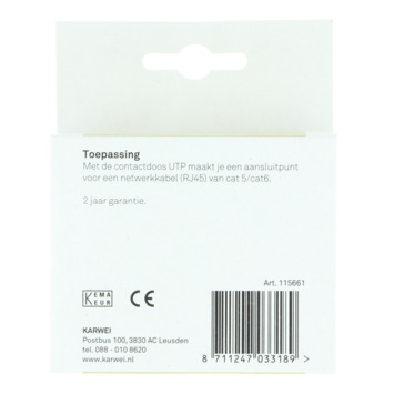 KARWEI Solis Wandcontactdoos UTP Wit kun je gebruiken voor het aansluiten van computers, modems, spelcomputers, smart-tv's of andere elektronica met een zogeheten LAN-aansluiting.