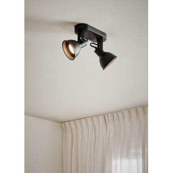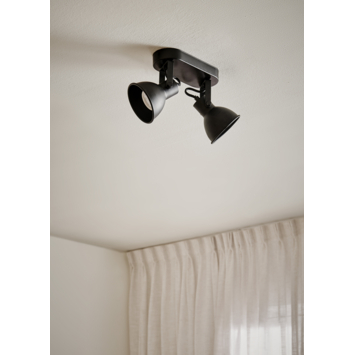 De trendy KARWEI spot Enzo is een veelzijdige lamp die passend is bij ieders interieur. Zijn mat zwarte kleur, zowel aan de binnen- als buitenkant, geeft hem die stoere look. De lichtkappen zijn te kantelen waarmee je hem de gewenste richting op straalt en zo twee punten van de kamer verlicht. Enzo duospot is ook te verkrijgen in een mooie mat witte tint, of een uitvoering met één enkele spot.