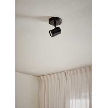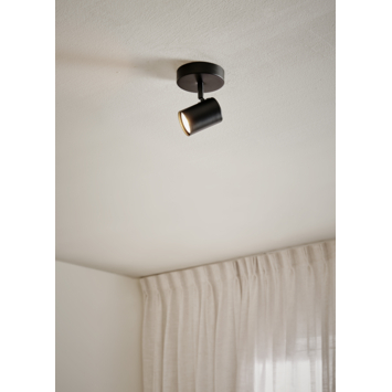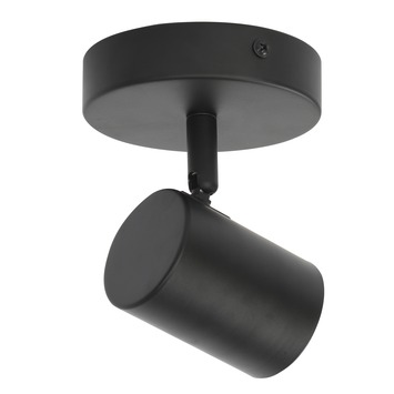De KARWEI spot Maks is een zeer flexible moderne lamp, passend in elk interieur. Zijn cilindervormige kop is alle kanten uit te draaien, waardoor zijn lichtbunndel van maximaal 50 watt elk mooi object kan verlichten. Deze mat zwarte Maks is geschikt als plafond- en wandlamp. De Maks serie is ook uitgevoerd in het mat wit en met meerdere spotjes. Bekijk hiervoor ons assortiment opbouwspots.