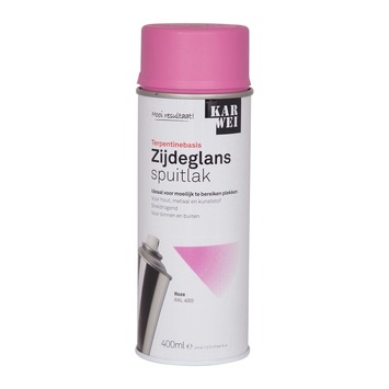 De KARWEI spuitlak zijdeglans fuchsia 400 ml is een duurzame spuitlak met hoge dekkracht. De lak is ideaal voor moeilijk te schilderen oppervlakken zoals buizen, rotan, spijlen en dergelijke. De lak kan gebruikt worden op houtwerk, metaal, harde kunststoffen en keramische materialen. De spuitlak is zowel binnen als buiten te gebruiken en is gemakkelijk te verspuiten. De lak is fuchsia van kleur en heeft een zijdeglanzende afwerking. De spuitbus bevat 400 milliliter, dit is genoeg voor een oppervlakte van zo'n 1,5 tot 2 vierkante meter. De hoogglans spuitlak is ook verkrijgbaar in diverse andere kleuren.