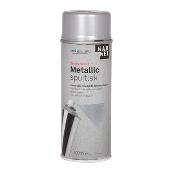 De KARWEI spuitlak zijdeglans metallic zilver 400 ml is een duurzame spuitlak met hoge dekkracht. De lak is ideaal voor moeilijk te schilderen oppervlakken zoals buizen, rotan, spijlen en dergelijke. De lak kan gebruikt worden op houtwerk, metaal, harde kunststoffen en keramische materialen. De spuitlak is zowel binnen als buiten te gebruiken en is gemakkelijk te verspuiten. De lak is metallic zilver van kleur en heeft een zijdeglanzende afwerking. De spuitbus bevat 400 milliliter, dit is genoeg voor een oppervlakte van zo'n 1,5 tot 2 vierkante meter. De hoogglans spuitlak is ook verkrijgbaar in diverse andere kleuren.