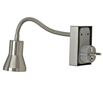 Deze KARWEI stekkerspot is zeer geschikt als leeslamp en je sluit hem gemakkelijk aan op elk contactpunt in je huis. Vanaf dat contactpunt richt je hem eenvoudig alle kanten op. Op het armatuur van de lamp zit de aan- en uitschakelaar. Het lampje is gemaakt van mooi geborsteld aluminium. Met een fitting van GU10 is hij geschikt voor een energiezuinige LED verlichting met maximaal 5 watt.