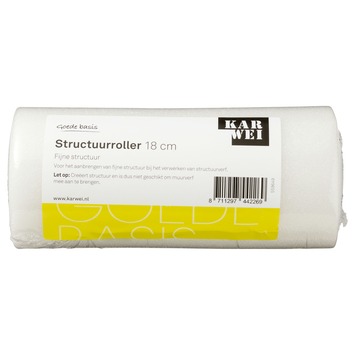 De KARWEI structuurverfroller voor fijne structuur 18 cm is speciaal ontworpen voor het aanbrengen van structuurverf met een subtiele afwerking. De roller is 18 centimeter breed en geschikt voor grote oppervlakken zoals muren en plafonds. Je gebruikt deze roller op gladde ondergronden zoals gips, hout en pleisterwerk. Het schuim van polyethyleen heeft een dichte structuur waarmee je een fijne textuur in de verf aanbrengt. Deze roller is niet geschikt voor gewone muurverf en past op standaard beugels van 18 centimeter.\