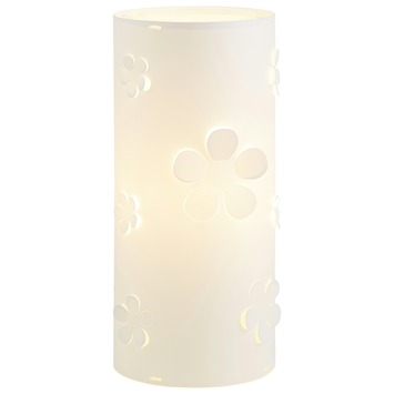De tafellamp Bloem is een toffe lamp voor op de kinderkamer. De ronde tafellamp is wit van kleur en is voorzien van opengewerkte bloemen. De opengewerkte bloemen zien er niet alleen fantastisch uit maar geven ook een leuk lichteffect. Daarmee is deze lamp uitstekend geschikt voor de kinderkamer. De lamp is 36 centimeter hoog, heeft een diameter van 16,5 en heeft een E14 fitting. De lamp wordt exclusief lichtbron geleverd.
