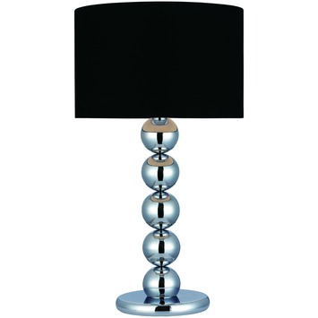 De KARWEI tafellamp Esfera is een moderne tafellamp. De chromen voet van zilveren bollen geeft de lamp een moderne en chique uitstraling. De zwarte kap houdt het geheel rustig en daardoor heeft de lamp ook een strak uiterlijk. Zet deze lamp op je side table of kast en je creëert direct sfeer. De tafellamp heeft een E27 fitting en is geschikt voor een lamp met een maximaal wattage van 60 watt.