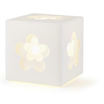 De tafellamp Happy bloem wit is een prachtige lamp die uitermate geschikt is voor de kinderkamer. De lamp is wit van kleur en is voorzien van gestanste bloemen. Dit geeft de lamp een speels uiterlijk en zorgt ook nog voor een prachtig lichteffect, wat zeker in de smaak valt bij kinderen. Met deze lamp geef je de kinderkamer direct sfeer. De lamp is 18,5 bij 18,5 centimeter groot en heeft een E14 fitting. De lamp wordt geleverd exclusief lichtbron.