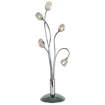 De KARWEI tafellamp Linde is een prachtige tafellamp. De vijf chromen licht gebogen armen met glazen kelken geven de lamp een speels maar chique uitstraling. Zet deze lamp op je side table of kast en je creeert direct sfeer. De tafellamp bestaat uit vijf losse lampjes met G4 fitting en is geschikt voor een maximaal wattage van 50 watt.