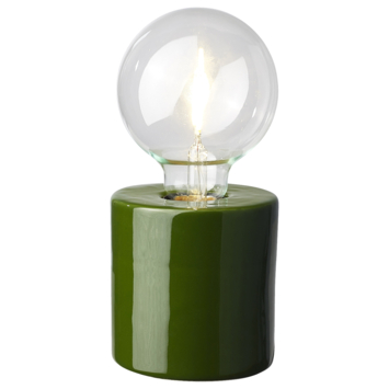 Hele leuke groene lampenvoet. Het is wel lastig om een laag wattage LED lamp te vinden in de maat E27. Erg leuk met de juiste LED lamp.