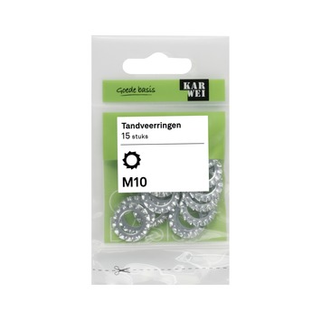 Verzinkte tandveerring. Tandveerringen zijn zelfborgende ringen die het lostrillen van een moer of een bout voorkomen