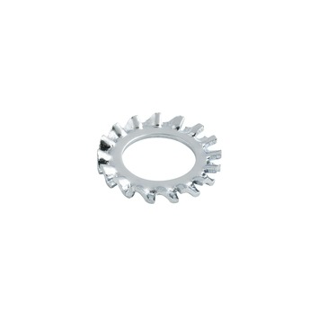 Verzinkte tandveerring. Tandveerringen zijn zelfborgende ringen die het lostrillen van een moer of een bout voorkomen.