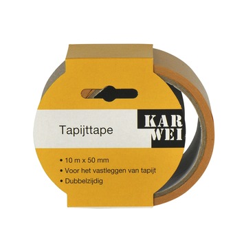 De KARWEI tapijtband dubbelzijdig 10mx38mm is een tapijttape van het KARWEI eigen merk. De tapijttape is dubbelzijdig plakkend en daarmee geschikt voor het vastleggen van tapijten aan een vlakke ondergrond. Dit voorkomt het ongewenst wegschuiven van het tapijt.