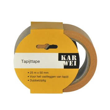 De KARWEI tapijtband dubbelzijdig 25mx38mm is een tapijttape van het KARWEI eigen merk. De tapijttape is dubbelzijdig plakkend en daarmee geschikt voor het vastleggen van tapijten aan een vlakke ondergrond. Dit voorkomt het ongewenst wegschuiven van het tapijt.
