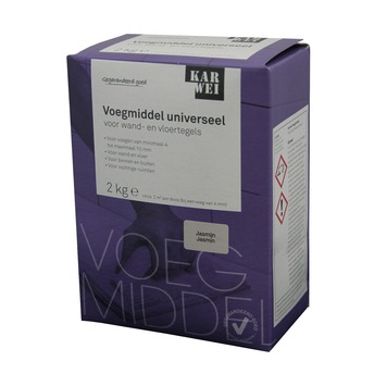 Het KARWEI tegel voegmiddel is een universeel toepasbaar voegmiddel voor keramische wand- en vloertegels met een voegbreedte van 4 tot 10 mm. Het voegmiddel is gemakkelijk aan te maken met leidingwater en kan zowel binnen- als buiten worden toegepast. Tevens is het voegmiddel te gebruiken in vochtige ruimtes. Het verbruik van het voegmiddel is bij een voegbreedte van 4 mm ongeveer 1kg per m2. Met deze doos van 2 kg heb je dan ongeveer voldoende voor ca. 2 m2. Het voegmiddel heeft de kleur jasmijn.