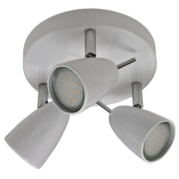 De KARWEI trioplaat Andrea glimmend wit is een mooie glimmende witte basislamp met drie spots. De lamp bestaat uit drie richtbare spotjes waarmee je het licht in elke gewenste richting kunt schijnen. De KARWEI trioplaat Andrea is voorzien van geïntegreerde LED-lichtbronnen. De lamp heeft een maximaal wattage van 9 watt en is zeer zuinig in gebruik.