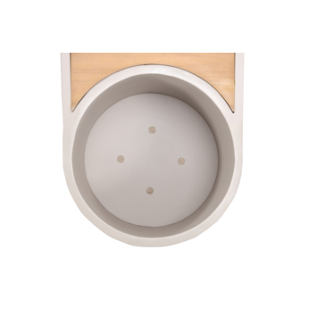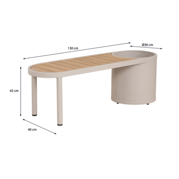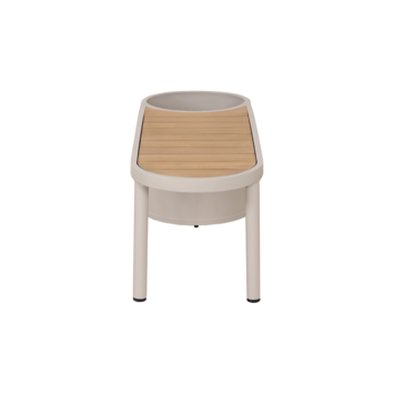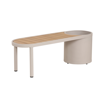 - Licht teakhouten zitting op beige metalen frame