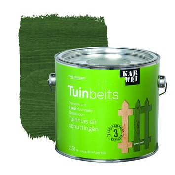 De KARWEI tuinbeits tuinhuis en schuttingen green wash transparant 2,5 l is ideaal voor het langdurig beschermen van tuinhuizen en schuttingen, ook als ze geïmpregneerd zijn. De beits dringt goed door in het hout en heeft een duurzaamheid van 3 jaar. Hierdoor is de beits uitermate geschikt voor tuinhuizen en schuttingen. Deze glanzende beits is een oplosmiddel houdend product en is weersbestendig, waterafstotend, UV-bestendig en vochtregulerend. Daarnaast heeft de beits een optimale dekking en vloeiing, waardoor het aanbrengen een fluitje van een cent is. Grondverf is niet nodig en je kunt de beits eenvoudig met een kwast of roller aanbrengen. Het blik bevat 2,5 liter transparante green wash beits, dit is goed voor een oppervlakte van zo'n 33 vierkante meter. Op onbehandeld hout is het aan te bevelen om 3 lagen aan te brengen, op hout in goede staat volstaan 2 lagen. De tuinbeits is in diverse dekkende en transparante kleuren verkrijgbaar.