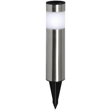 De KARWEI tuinspies Peter is een handige Solar tuinspies. De tuinspies is met een IP waarde van 44 bestand tegen verstuivend water en kan dus vrijwel overal buiten geplaatst worden. Omdat de tuinspies op Solar werkt, wordt de spies opgeladen door zonlicht en heb je geen elektriciteit nodig om de tuinspies te laten werken. In de tuinspies zit een batterij en een geïntegreerde LED-lichtbron welke beschikt over energieklasse A. De tuinspies is gemaakt van roestvrij staal waardoor het stevig in elkaar zit en lang mee gaat. De hoogte van de lamp is 37,5 centimeter. De KARWEI tuinspies Peter is goed te combineren met de KARWEI tuinsokkel Indy en de KARWEI buitenlamp Peter. Zo heb je alle tuinsokkels en wandverlichting in de tuin in dezelfde moderne stijl.
