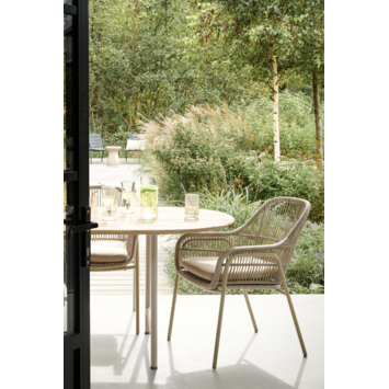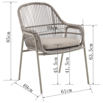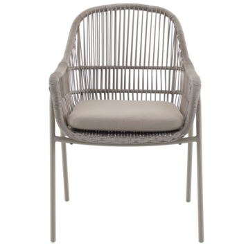 De stoel wordt compleet geleverd, zodat je direct kunt genieten van het comfort en de uitstraling. De bijgeleverde beige kussens voegen extra comfort toe en passen naadloos bij de kleur van de stoel, wat het geheel een verfijnde uitstraling geeft. Omdat de stoel niet als bouwpakket wordt geleverd, kun je deze meteen gebruiken. De Feline is bestand tegen verschillende weersomstandigheden, waardoor je er vele seizoenen plezier van zult hebben.