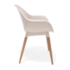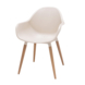 - Zitting in zandkleurig kunststof en eucalyptushouten poten