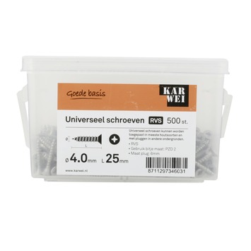 KARWEI unischroef platkop rvs 4x25 mm (500 stuks)