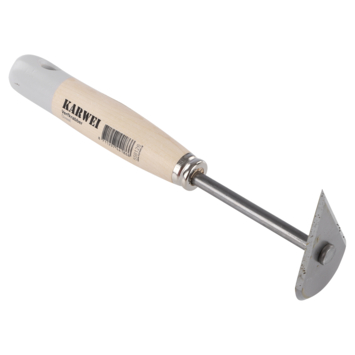 De KARWEI verfkrabber ovaal is een verfkrabber van het KARWEI eigen merk. De krabber heeft een blank gehard stalen en schuin geslepen peervormige kop. De steel is vervaardigd uit gelakt beukenhout. De schraper ovaal is geschikt voor het verwijderen van oude verfresten van houten ondergronden zoals houten deurposten en kozijnen. Door de ronde en spits toelopende vorm geschikt voor moeilijk bereikbare plaatsen..
