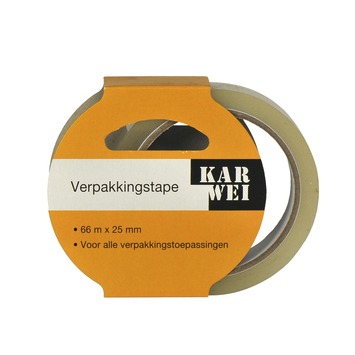 De KARWEI verpakkingstape 66mx38mm transparant is een verpakkingstape van het KARWEI eigen merk. De verpakkingstape is geschikt voor bijvoorbeeld versteviging en dichtplakken van (verhuis)dozen of postpakketten.