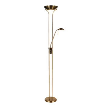 De vloerlamp Carmona met leesarm (messing kleur) is een moderne maar ook zeer functionele vloerlamp. Het strakke uiterlijk zorgt ervoor dat deze lamp past in ieder modern interieur. De extra leesarm is richtbaar en daardoor erg handig bij bijvoorbeeld het lezen van een boek of tijdschrift op de bank. Met de ingebouwde dimmer creëer je eenvoudig het gewenste licht voor ieder moment. Deze lamp is ook verkrijgbaar in nikkel.