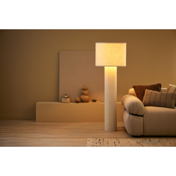 De KARWEI vloerlamp Jim is speciaal ontworpen voor gebruik met een E27 lichtbron. Met een formaat van 145x50cm (hoogte x diameter) is deze vloerlamp een blikvanger in de woonkamer. De lampenkap en voet zijn vervaardigd van beige licht katoenstof. Met een snoerlengte van 180 cm biedt de tafellamp de vrijheid om moeiteloos verplaatst te worden. De KARWEI vloerlamp Jim is ook beschikbaar als tafellamp.