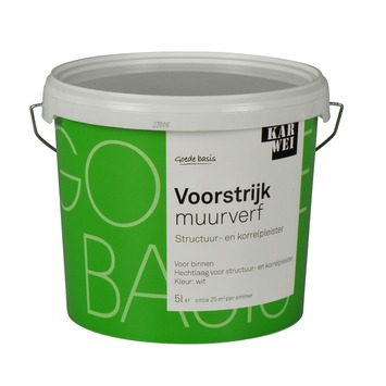 De KARWEI voorstrijk muurverf structuur wit 5 l is een uitstekend voorbehandelingsmiddel voor droge ondergronden die zullen worden bewerkt met structuurpleister of korrelpleister. De voorstrijk is tevens geschikt als voorbehandeling voor ondergronden die zullen worden bewerkt met structuurverf. De voorstrijk zorgt ervoor dat de eindlaag uitstekend hecht en dat zuigende werking die in muren kan voorkomen vermindert wordt. De voorstrijk is eenvoudig aan te brengen met een muurverfroller of blokkwast. De emmer bevat 5 liter muurverf, dit is genoeg voor een oppervlakte van zo'n 25 vierkante meter.