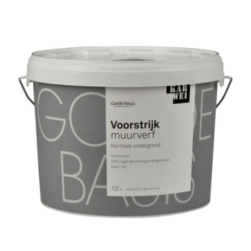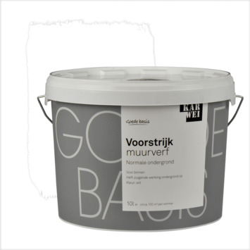 De KARWEI voorstrijk muurverf wit 10 l is een dekkend voorbehandelingsmiddel geschikt voor droge ondergronden. Denk hierbij aan schuur- en pleisterwerk, geschilderde muren en dergelijke. De voorstrijk heft de zuiging op die in muren kan voorkomen, hierdoor wordt het rendement van de eindlaag muurverf vergroot. Tevens voorkomt het eventuele glansverschillen in de afwerklaag. De voorstrijk is eenvoudig aan te brengen met een muurverfroller. De emmer bevat 10 liter voorstrijk, dit is genoeg voor een oppervlakte van zo'n 100 vierkante meter. De voorstrijk voor is ook verkrijgbaar in een groot aantal andere lichte kleuren in de KARWEI bouwmarkt op de verfmengmachine.