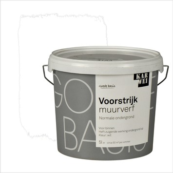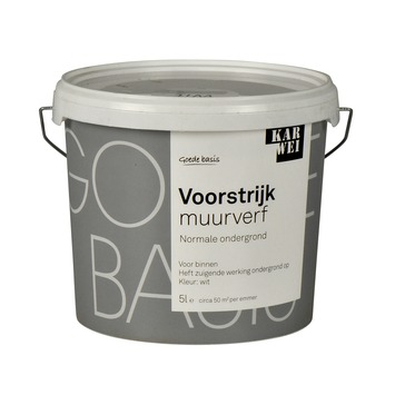 De KARWEI voorstrijk muurverf wit 5 l is een dekkend voorbehandelingsmiddel geschikt voor droge ondergronden. Denk hierbij aan schuur- en pleisterwerk, geschilderde muren en dergelijke. De voorstrijk heft de zuiging op die in muren kan voorkomen, hierdoor wordt het rendement van de eindlaag muurverf vergroot. Tevens voorkomt het eventuele glansverschillen in de afwerklaag. De voorstrijk is eenvoudig aan te brengen met een muurverfroller. De emmer bevat 5 liter voorstrijk, dit is genoeg voor een oppervlakte van zo'n 50 vierkante meter. De voorstrijk voor is ook verkrijgbaar in een groot aantal andere lichte kleuren in de KARWEI bouwmarkt op de verfmengmachine.
