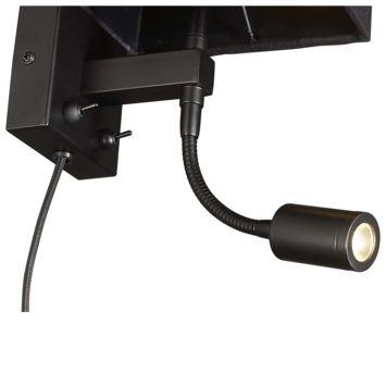 KARWEI wandlamp Leo is een moderne maar ook sfeervolle wandlamp. Het metalen armatuur in combinatie met de vierkante kap geven de lamp een strakke uitstraling. Hang deze lamp bijvoorbeeld boven je nachtkastje en creëer direct extra sfeer. De wandlamp is voorzien van een leeslamp met geintegreerd LED.