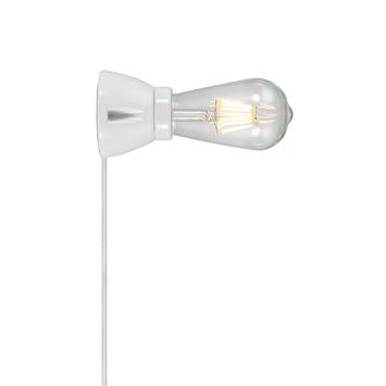 De wandlamp Nanna wit is een subtiele, eenvoudige lamp geschikt voor ieder interieur. Bij deze lamp staat de lichtbron centraal. Kies bijvoorbeeld voor een energiezuinige LED filament lichtbron en geef deze lamp een moderne twist. Plaats de wandlamp Nanna wit als single object of ga voor een levendiger beeld door meerdere lampen bij elkaar op te hangen. De lamp is voorzien van electriciteitssnoer met stekker waardoor je niet gebonden bent aan de stroompunten in wanden en muren. Wandlamp Nanna is ook verkrijgbaar in het zwart.