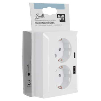 KARWEI Zenith Dubbel Stopcontact Geaard met USB A+C Wit