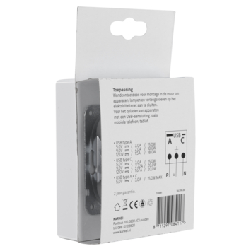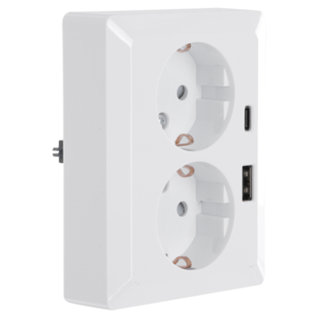 Dit dubbele stopcontact beschikt over zowel een USB-A en USB-C poort. Dit zorgt ervoor dat er altijd ruimte vrij is om kleine apparaten op te laden.