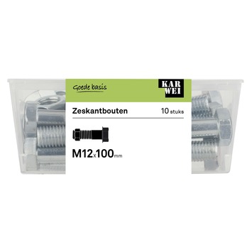 Verzinkte zeskantbout met deeldraad maat M12x100mm 10 stuks, incl. moer. Deze zeskantbout wordt veelal gebruikt voor het maken van een sterke verbinding