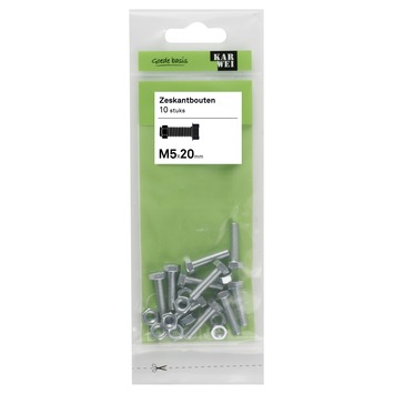 KARWEI zeskantbout voldraad M5x20 mm 10 stuks