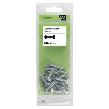 KARWEI zeskantbout voldraad M6x20 mm 10 stuks3.69