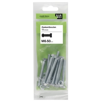 KARWEI zeskantbout voldraad M6x50 mm 10 stuks