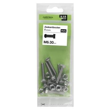 KARWEI zeskantbout voldraad rvs M6x30 mm 8 stuks