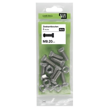 KARWEI zeskantbout voldraad rvs M8x20 mm 8 stuks